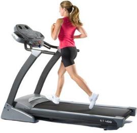 The Spirit Esprit ET488 folding treadmill features a 2.25 HP Continuous Duty Motor, 2.5" rollers, steel frame, and a 2-ply Duraweave belt on a 20" x 55" running deck. Its standard features include a folding design, 4-wheel mobile carriage, mp3 port and speakers, a cooling fan, and a 0% to 10% incline. Soft drop deck, durable steel frame, pulse grip sensor, 6 pre-set programs Console; Red LED colour backlit computer display Handlebars: Handlebar mounted speed and incline controls Running Area: 51 x 140cm Incline: 10% power incline Special features: Audio jack and MP3 speakers, cooling fan 2.5hp continous duty motor Max user weight: 150kg